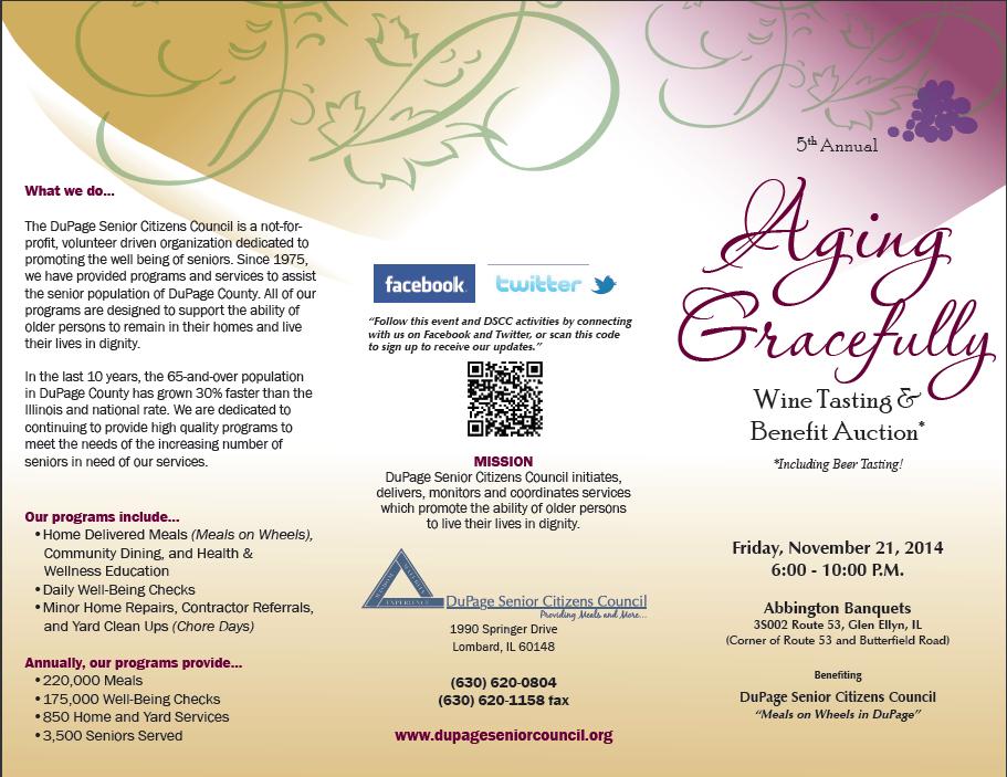 DuPage Senior Citizen’s Council will be hosting it’s 4th annual Wine Tasting Benefit and they are reaching out to you for support! DSCC is seeking sponsors, advertisers, auction donors and attendees! Those who have attended in the past, can attest to the enjoyable night, fabulous food and great wine!